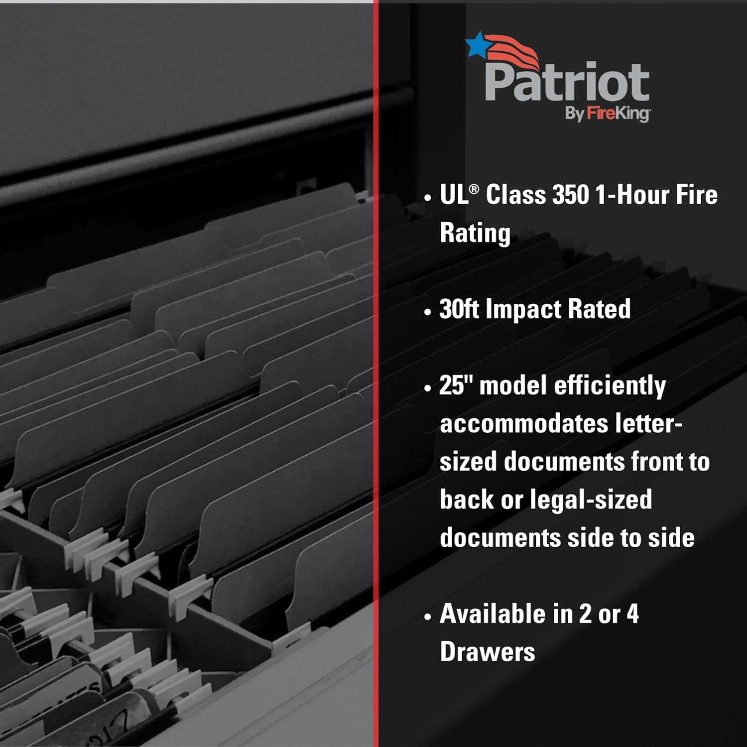 FireKing Patriot Vertical 4 Drawer Legal & Letter Fire Safe File Cabinet, Key Lock, 1 Hour Fire Rated UL Rated & Water Resistant, USA Made, Black