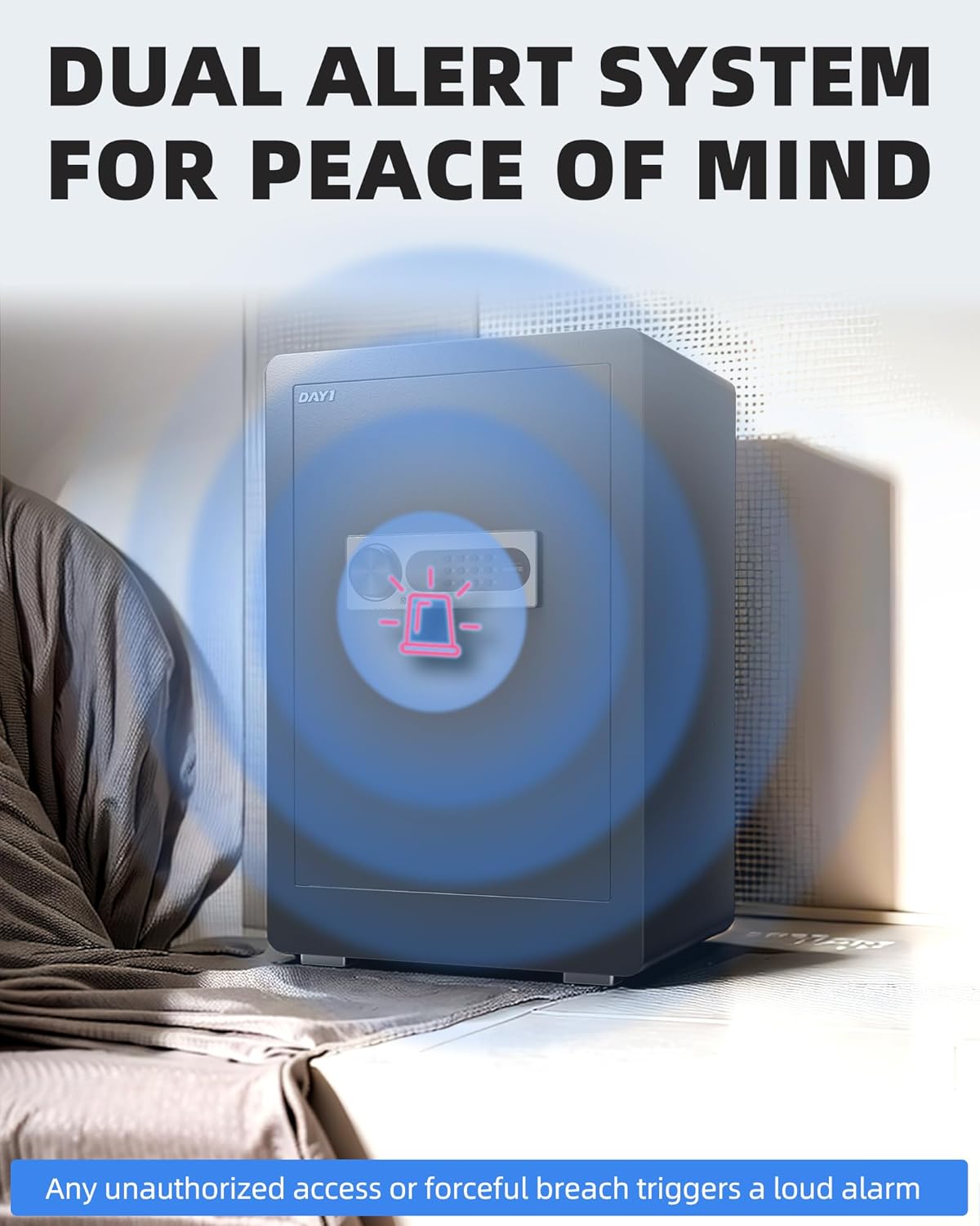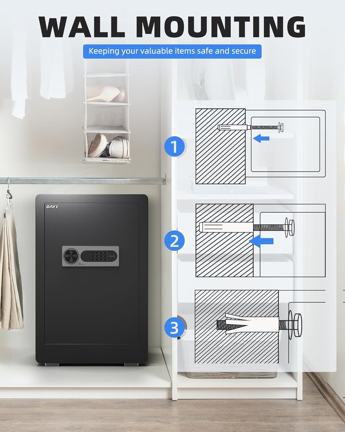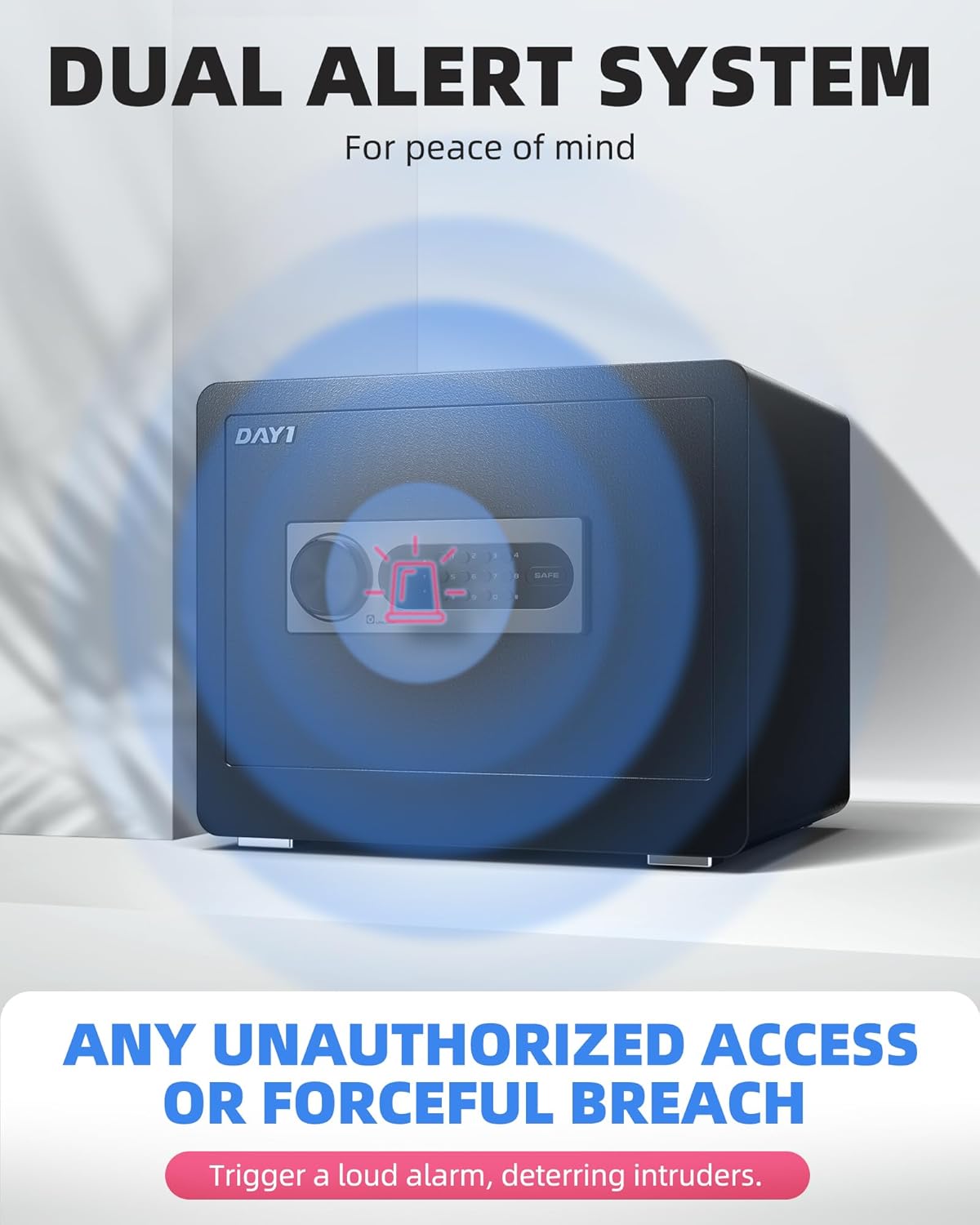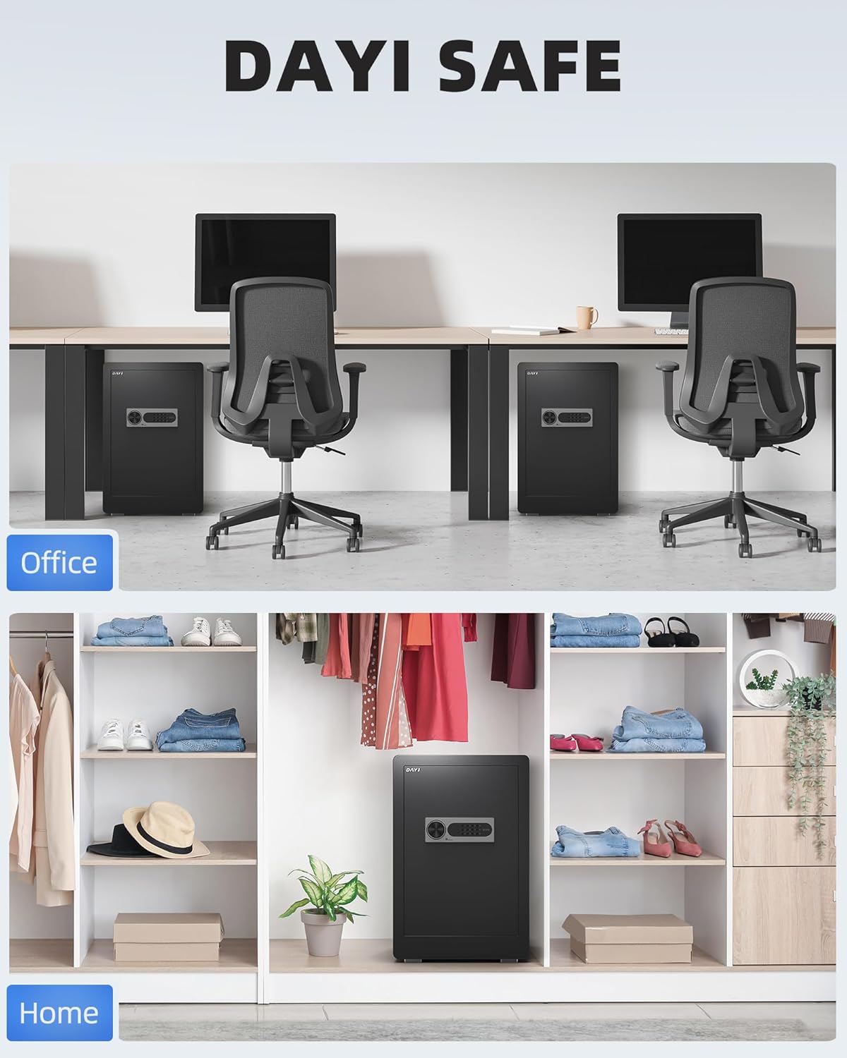 DAYI Safe Box, 2.0 Cubic Feet Home Safe with Fireproof Waterproof Bag, Security Safe Box for Money Cash Valuables, Digital Electronic Keypad, Dual Alarm System, Removable Shelf - D-45