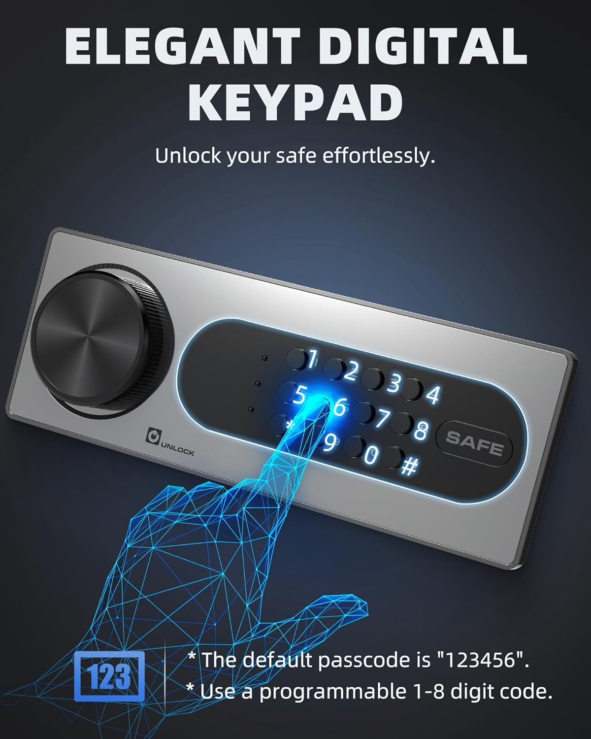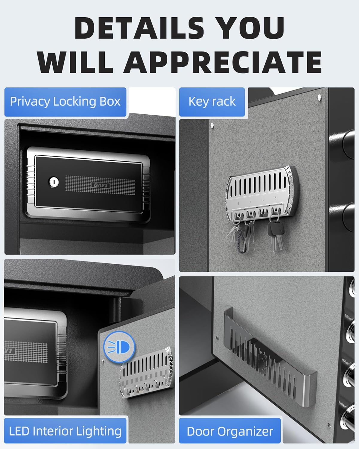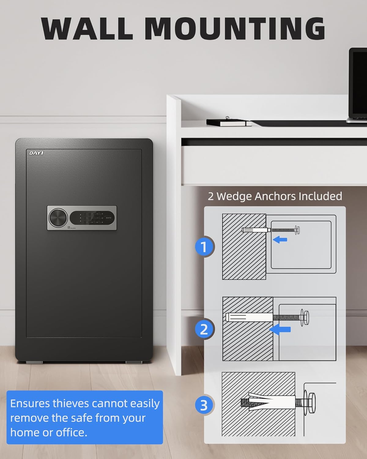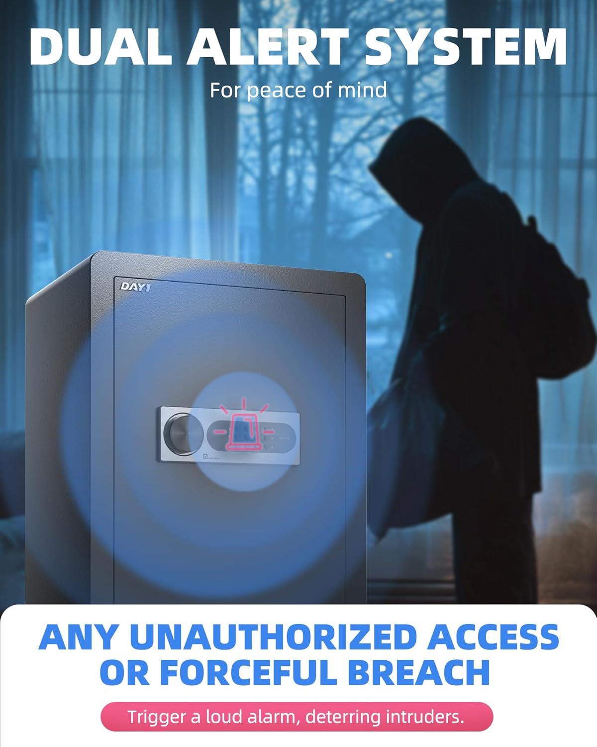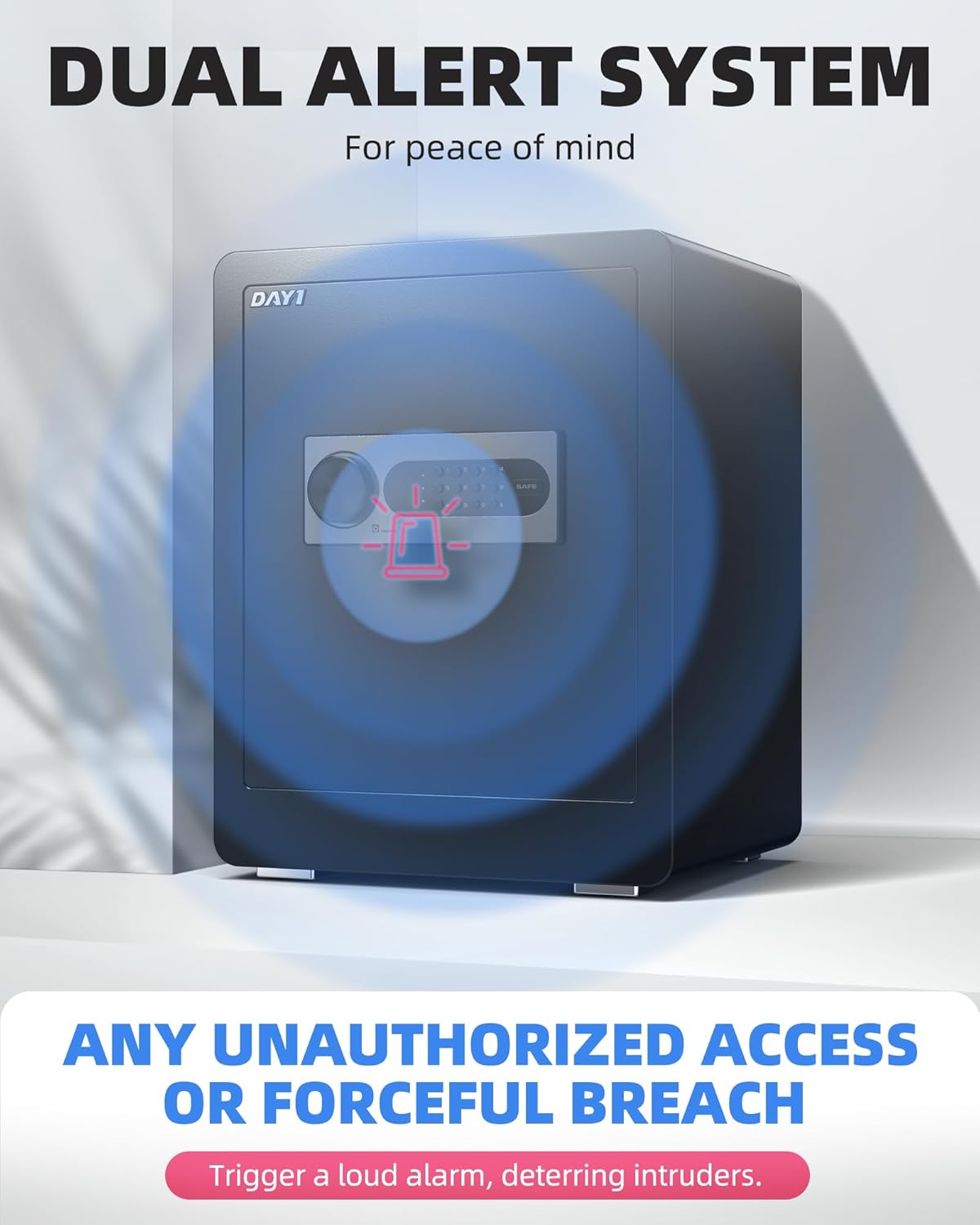 DAYI Safe Box, 2.0 Cubic Feet Home Safe with Fireproof Waterproof Bag, Security Safe Box for Money Cash Valuables, Digital Electronic Keypad, Dual Alarm System, Removable Shelf - D-45