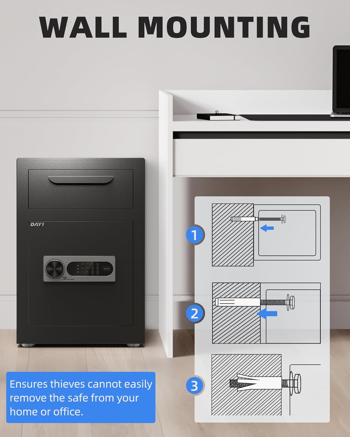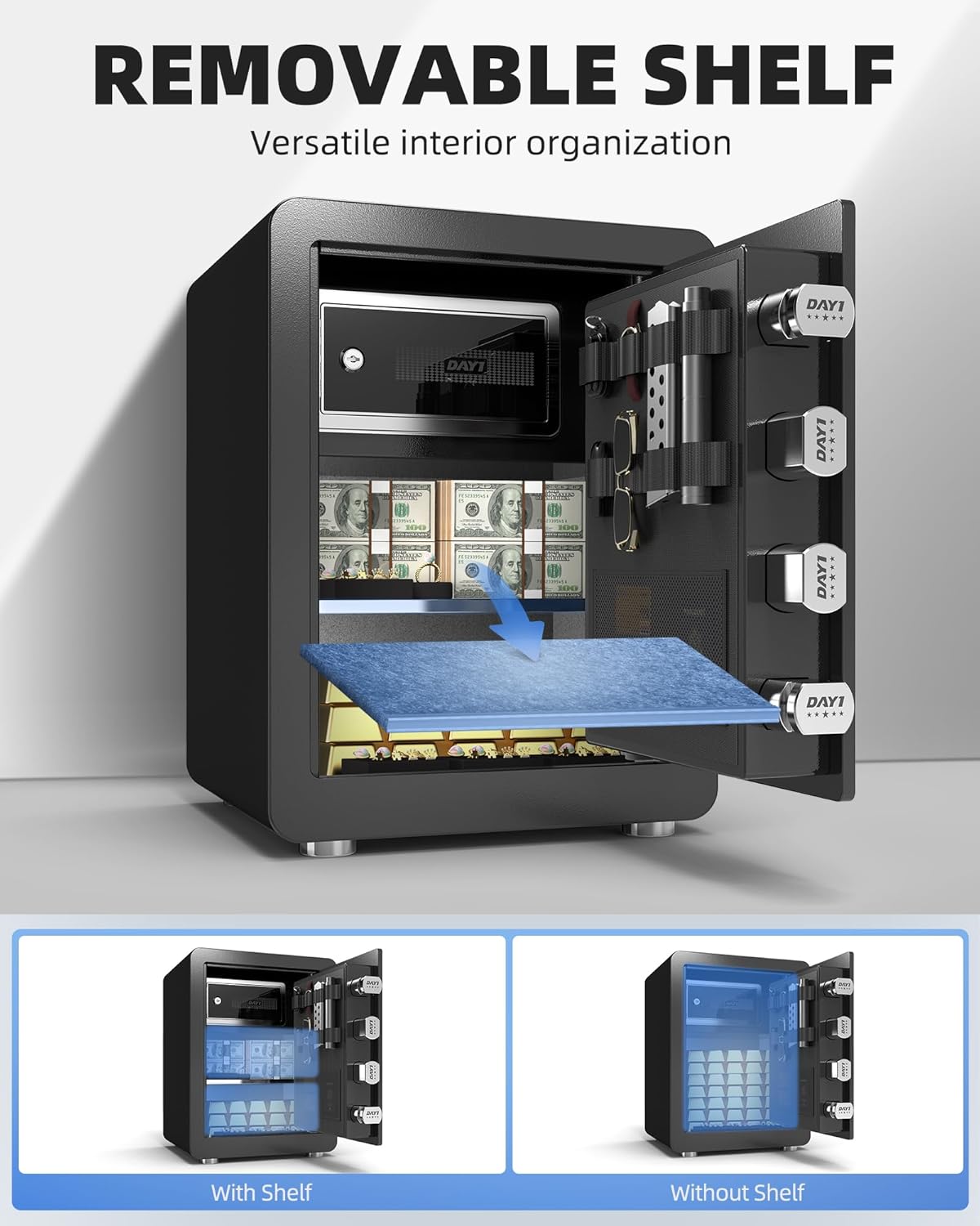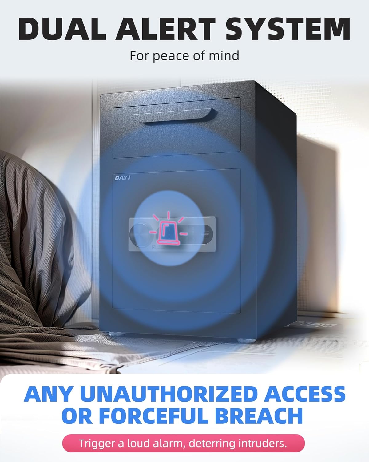 DAYI Biometric Fingerprint Safe Box, 3.0 Cubic Feet Home Safes with Fireproof Bag, Digital Touchpad Security Safe for Money Cash Documents, Dual Alarm System - DF-60 Pro